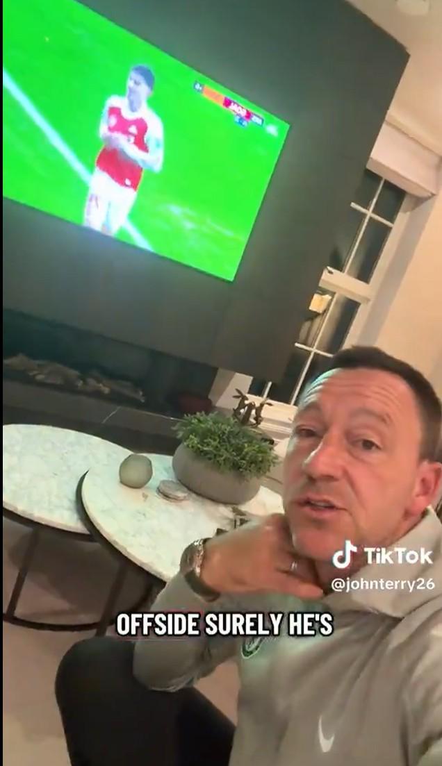哈弗茨进球后,特里说:“越位,反正就是越位,越位,他肯定越位了。我们的杯赛之旅到头了。但是他绝对越位了。”