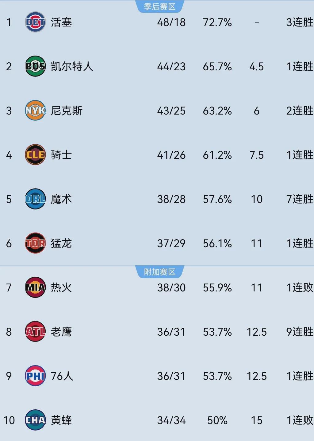 目前为止,魔术以38胜28负位列东部第五,热火则以38胜30负排名东部第七,双方的差距只有一个胜场。